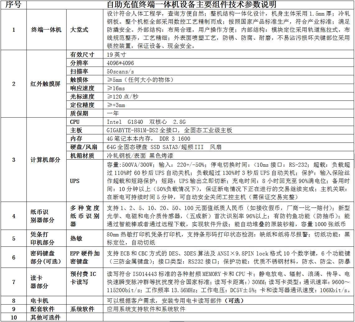 一、自助终端一体机外观(外观参考图片,不同外观实际以订购为准)