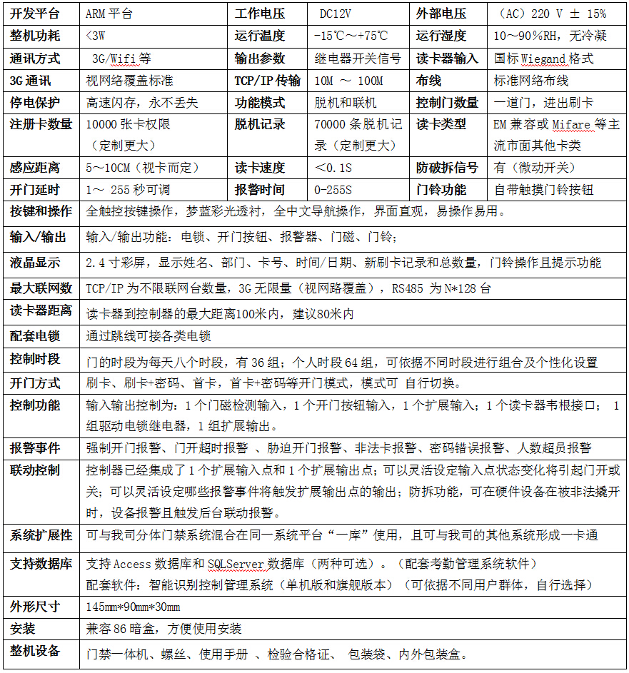 无线3G门禁/考勤一体机主要功能: