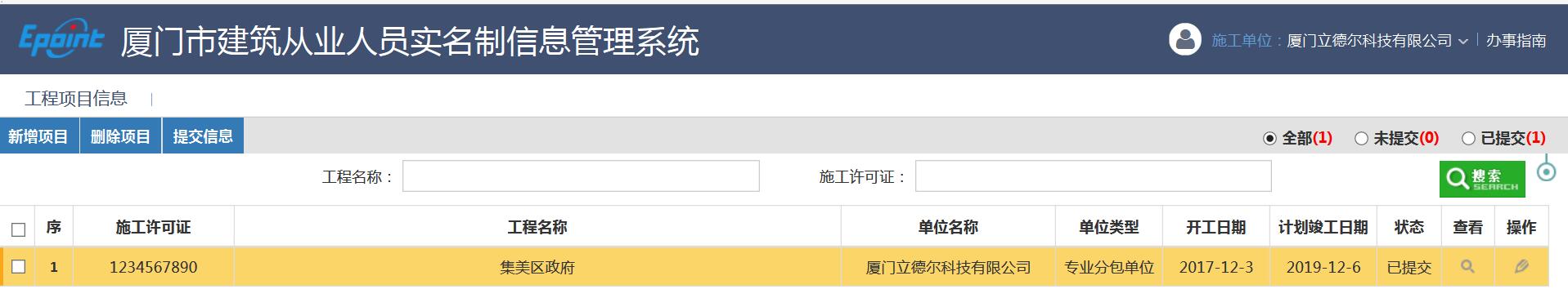 热烈庆祝厦门立德尔工地实名制施工现场规范化管理系统与厦门市建筑从业人员实名制信息管理系统平台成功对接