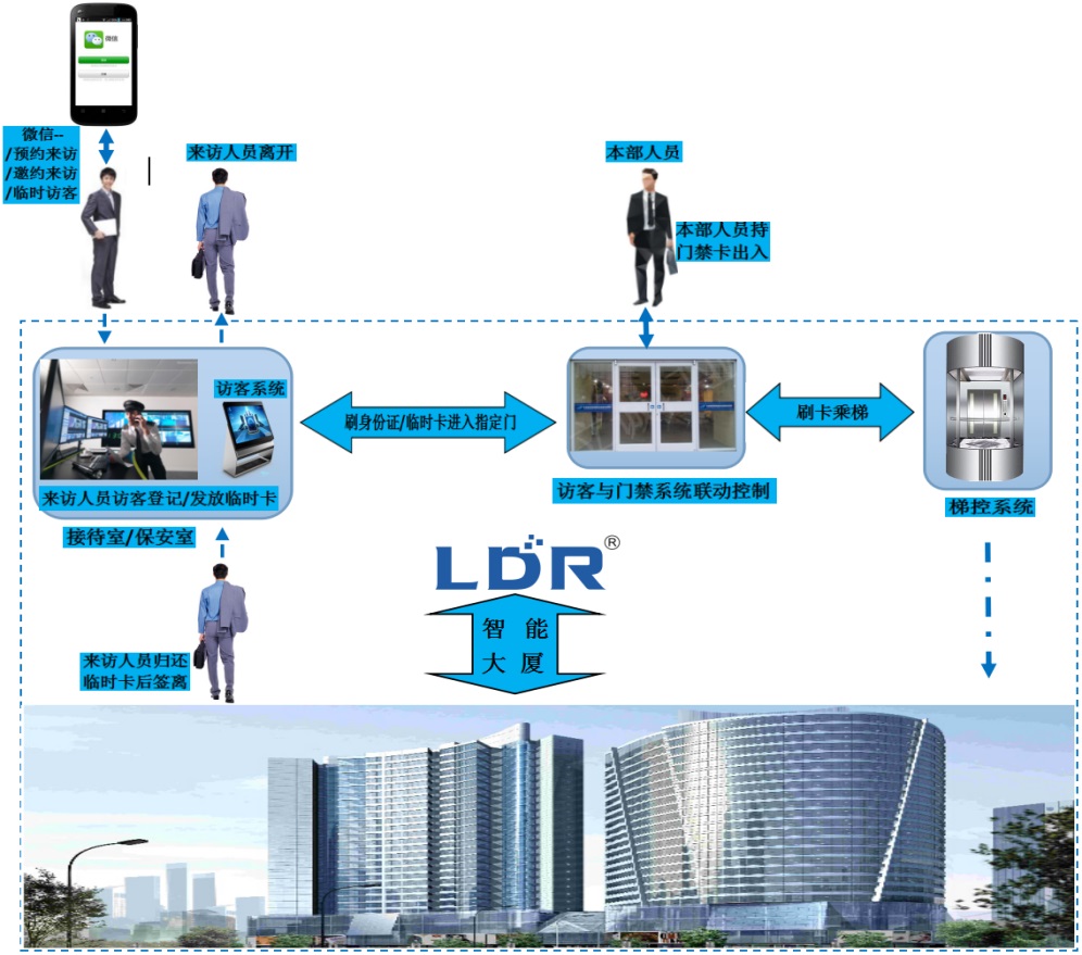 针对规范化程度越来越高的企业单位在访客登记及出入管理方面的现实需求, 该访客机可专门解决这一薄弱环节。产品充分利用现代化信息技术,能够保证整体运作的安全性,可做到人员、证件、照片三者统一。实现了“进门登记、出门注销、人像一一对应、随身物品登记、分级管理、历史记录查询、报表汇总”等功能,能够高效记录、存储、查询汇总访客的相关信息。访客管理系统能解决传统访客管理方式的诸多弊病,弥补了监控系统较难实现人员、信息与图像一一对应的不足,提高了门卫管理工作的质量和效率,同时可实现访客系统与门禁系统联动,实现访客临时卡与内部门禁系统的联动控制,加强单位安全保障,同时也顺应了时代的要求,实现电子化/数字化、信息化/人防与技防相结合,提升单位信息化办公形象和综合实力。