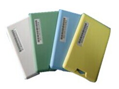 •工作频率:2.4GHz–2.5GHz ISM微波段 •工作方式:只读型 •射频功率 :-18dBm-0dBm •识别距离:0-50m(读写器标配2dBi全向天线),0-200m(视天线而定) •待机电流:<22uA/3V(500ms/次发送间隔) •调制模式:GFSK •通讯速率:250Kbps、1Mbps、2Mbps可选 •工作温度:-20℃~60℃ 90%RH •使用寿命:读写型为2年、只读型为4-5年 •电量提示:低电量报警功能 •材料 :ABS/ROHS、阻燃等级V0 •颜色:白色、蓝色、绿色、黄色 •IP等级:IP65 •抗跌路:1.2m •重量 :30g •外形尺寸 :87×56×5(m
