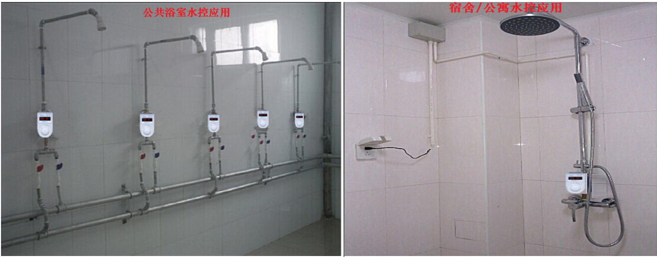 一、智能水控系统应用领域: 1、宿舍和澡堂淋浴收费控制:充分控制在浴室内节约水、电资源和能源。 2、适用于开水房:水电/热的收费控制 3、自助饮水机:对于自助式户外饮水机的用水控制和收费。 4、洗衣房收费:依据使用水、电量不同进行不同的收费。 5、绿化控制:定时浇灌,定时关闭,农业灌溉、绿化浇水、电等对于合情合理的浇地以防资源浪费。 6、工业用水、电、暧气供应控制等各种小额消费应用场所。 二、系统的主要组成部分 系统主要组成:系统管理中心、设备及附件、 用户IC卡片 ※ 系统管理中心硬件构成: 服务器/PC主机、读写器/授权加密机、配套管理软件、 ※ 设备附件主要构成:一体水控机(附件:电源);分体水控机(附件:电源、电磁阀、计流量时所配套流量表) ※ 用户卡片:Mifare one射频感应IC卡,有密码相同时才能对卡片进行读写,IC卡事先经过授权加密处理。 1)一体计量水控机(适用于澡堂、公寓、家庭、商务楼、直饮水等使用场合)